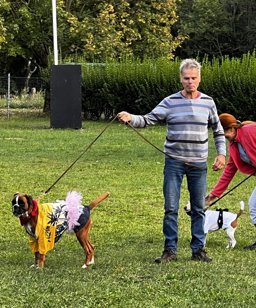 Neben einem Spaßparcours, den alle anwesenden Zwei- und Vierbeiner bewältigen mussten und der für viel Heiterkeit sorgte, konnte man seine Geschicklichkeit  beim Angelspiel, am Glücksrad oder Torwandschießen unter Beweis stellen. Den Höhepunkt bildete dann unser Karneval der Hunde, bei dem unsere Lieblinge  sich hervorragend verkleidet einem staunenden Publikum präsentierten. Es war ein rundherum gelungener Tag bei herrlichem Spätsommerwetter. Es tat der guten Stimmung auch keinen Abbruch, dass der Verein Speisen und Getränke für alle kostenfrei zur Verfügung stellte.