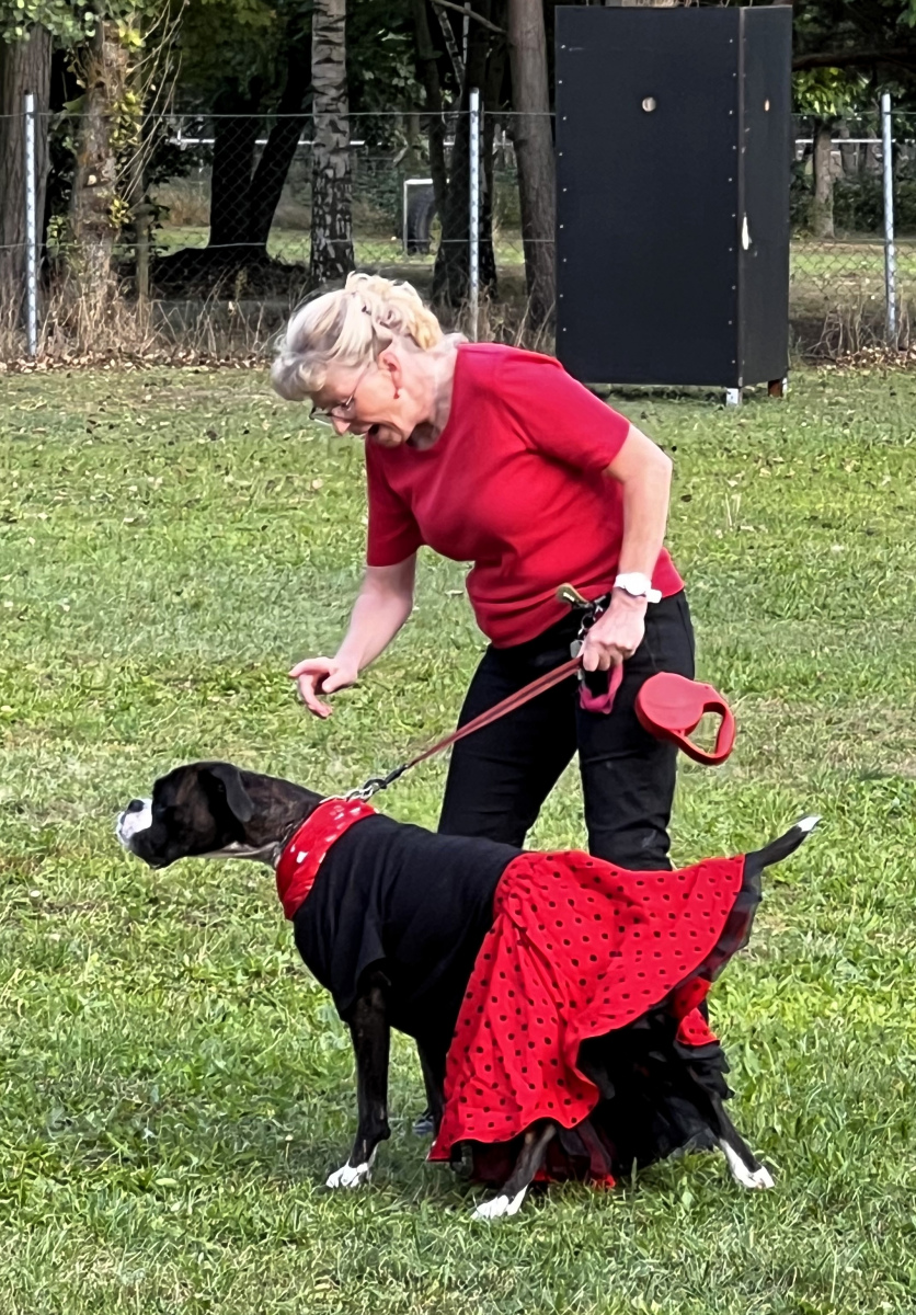 Neben einem Spaßparcours, den alle anwesenden Zwei- und Vierbeiner bewältigen mussten und der für viel Heiterkeit sorgte, konnte man seine Geschicklichkeit  beim Angelspiel, am Glücksrad oder Torwandschießen unter Beweis stellen. Den Höhepunkt bildete dann unser Karneval der Hunde, bei dem unsere Lieblinge  sich hervorragend verkleidet einem staunenden Publikum präsentierten. Es war ein rundherum gelungener Tag bei herrlichem Spätsommerwetter. Es tat der guten Stimmung auch keinen Abbruch, dass der Verein Speisen und Getränke für alle kostenfrei zur Verfügung stellte.